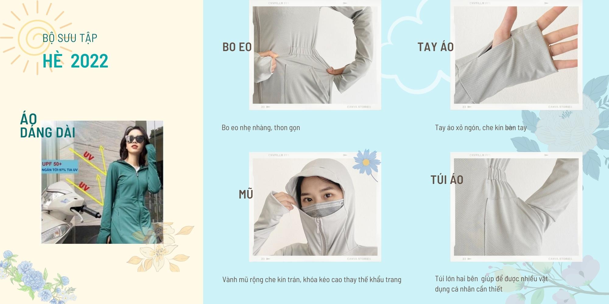 • Có mũ đội che kín đầu, bảo vệ tối đa ánh nắng chiều trực tiếp.