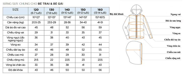 BẢNG KÍCH THƯỚC CHUNG DÀNH CHO BÉ GÁI & BÉ TRAI
