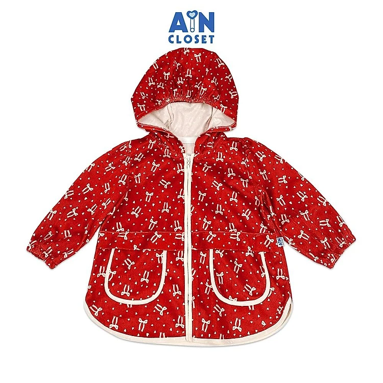 Áo Khoác có nón bé gái hoạ tiết Nơ Đỏ Cotton Nhung - AICDBGXYID58 - AIN Closet