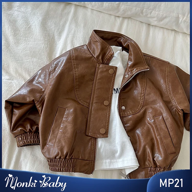 Áo khoác da cao cấp cho bé trai, chất dày dặn, mềm đẹp, phong cách nam tính mạnh mẽ, hàng chuẩn xịn, mang lại phong thái tự tin nam tính cho bé | MP21