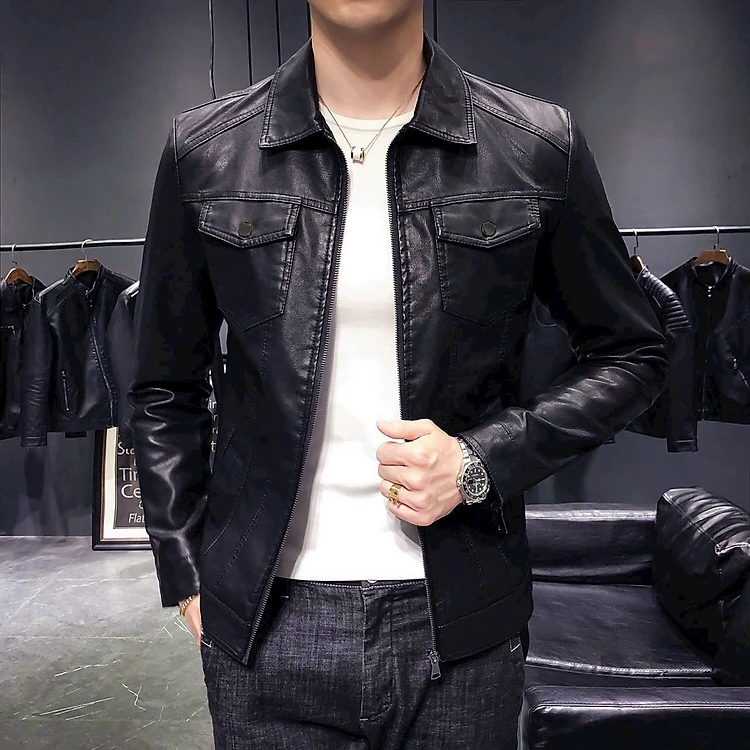 Áo khoác da nam phối 2 túi chất da dày dặn. Phong cách lịch lãm, sang trọng