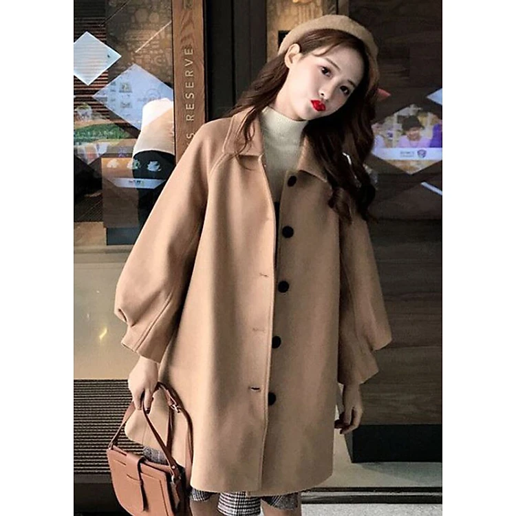 • áo khoác dạ nữ đẹp phá cách rõ nét từ thiết kế phần dưới rộng kiểu cách và điểm nhấn tay bồng siêu xinh