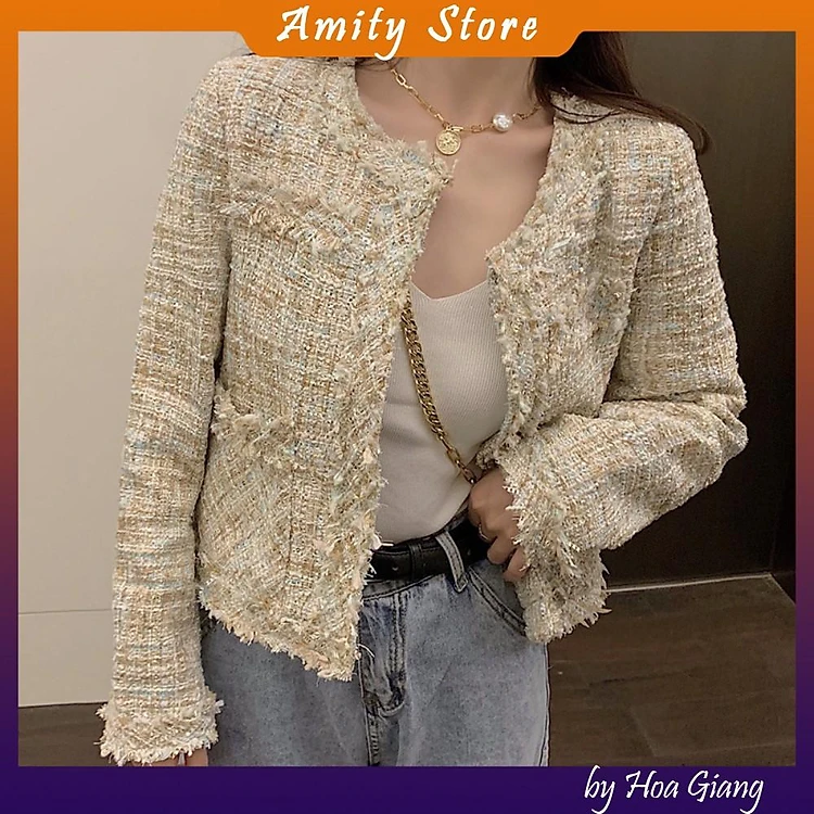 [Áo dạ tweed] Áo khoác dáng ngắn sang chảnh, áo khoác dạ ngắn hàng quảng châu