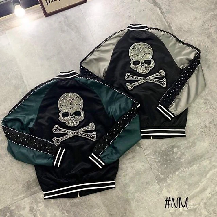 Áo khoác đầu lâu đính đá, áo bomber đầu lâu, áo khoác đính đá - Bee Shop
