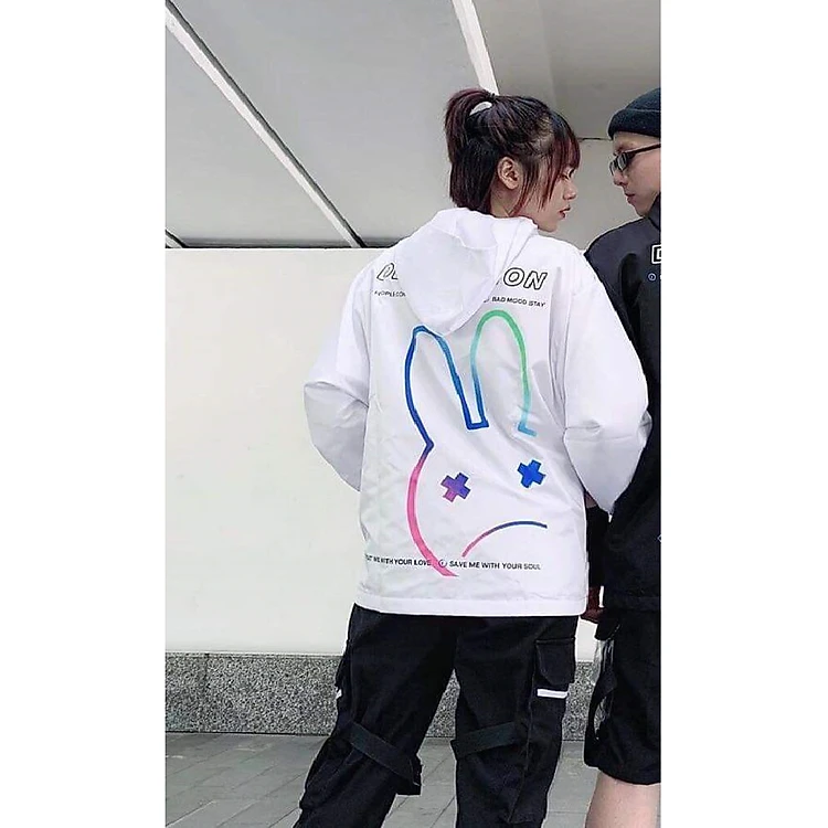ÁO KHOÁC DÙ NAM NỮ IN THỎ