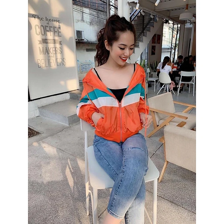 Áo khoác dù nữ MONboutique 2 sọc