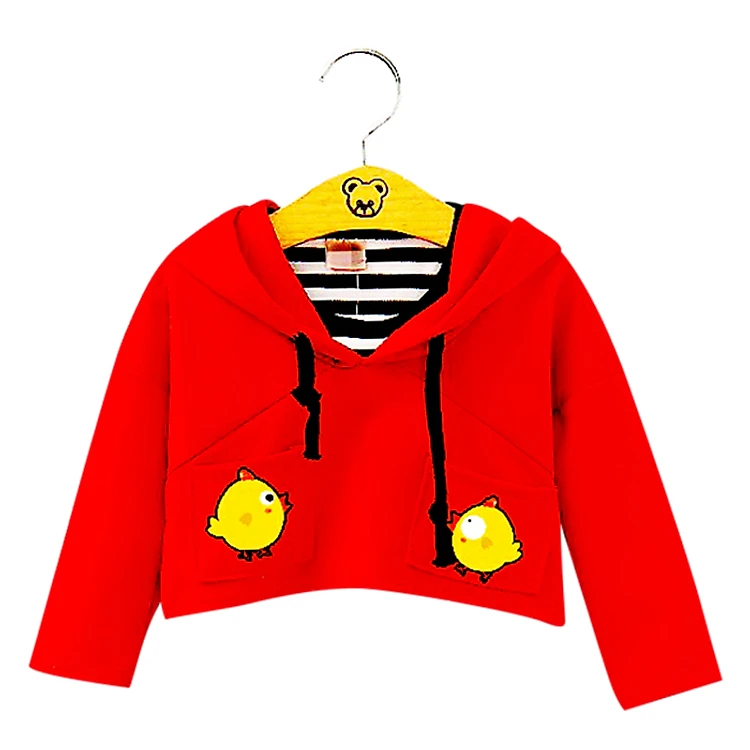 - Áo Khoác Gà Con BONCHOP ABG-95107636ĐO thiết kế kiểu áo tay dài có mũ năng động cho bé gái, hợp thời trang thích hợp khi bé đi ra ngoài đường lúc sáng sớm, hoặc mặc để che nắng hay khi trời se lạnh.
