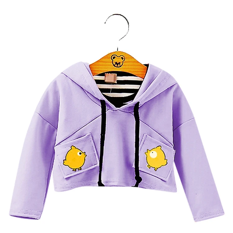 - Áo Khoác Gà Con BONCHOP ABG-95107636TIM thiết kế kiểu áo tay dài có mũ năng động cho bé gái, hợp thời trang thích hợp khi bé đi ra ngoài đường lúc sáng sớm, hoặc mặc để che nắng hay khi trời se lạnh.