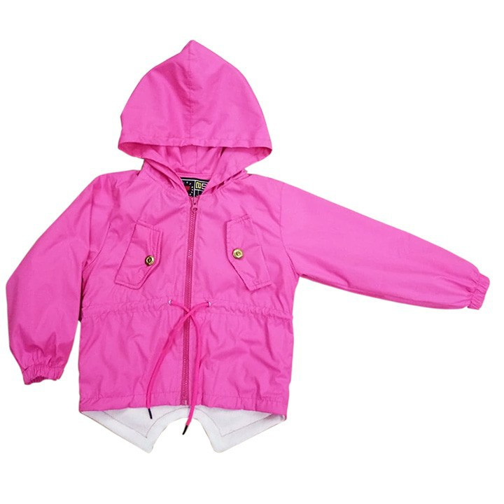 Ở ngang eo của áo khoác có dây rút xinh xắn, kết hợp cùng 2 túi giả trước ngực tạo ra một chiếc áo khoác gió cho bé vô cùng đáng yêu và tô điểm thêm cho sự đáng yêu của các bé.