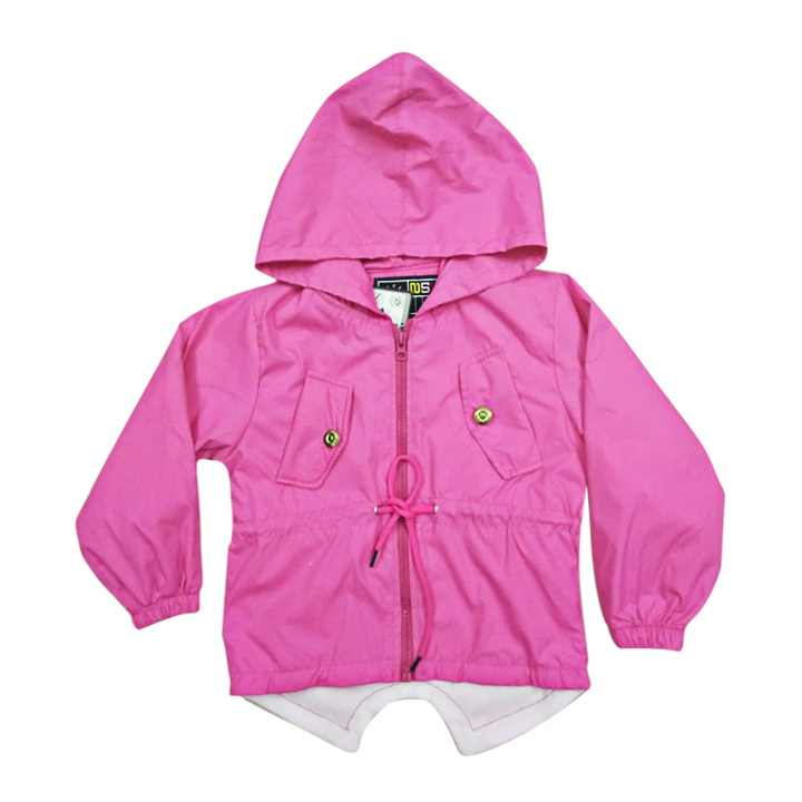 Áo khoác gió 2 lớp, vạt trước cao, vạt sau thấp đuôi tôm, áo chiết ngang eo vừa thời trang vừa ấm áp hơn cho bé khi mặc.