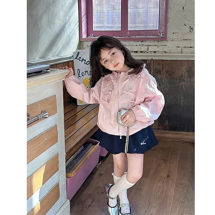Áo Khoác Gió Bé Gái Có Nón Đính Nơ Cực Xinh - Chống Nắng Từ 12-45kg Dành Cho Bé Gái