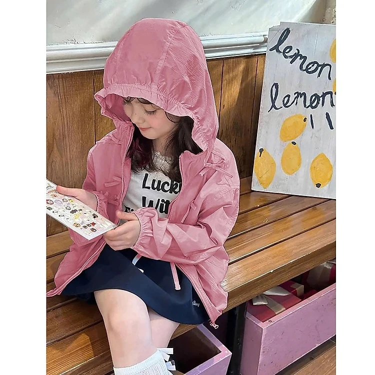 Áo Khoác Gió Bé Gái Có Nón Đính Nơ Cực Xinh - Chống Nắng Từ 12-45kg Dành Cho Bé Gái