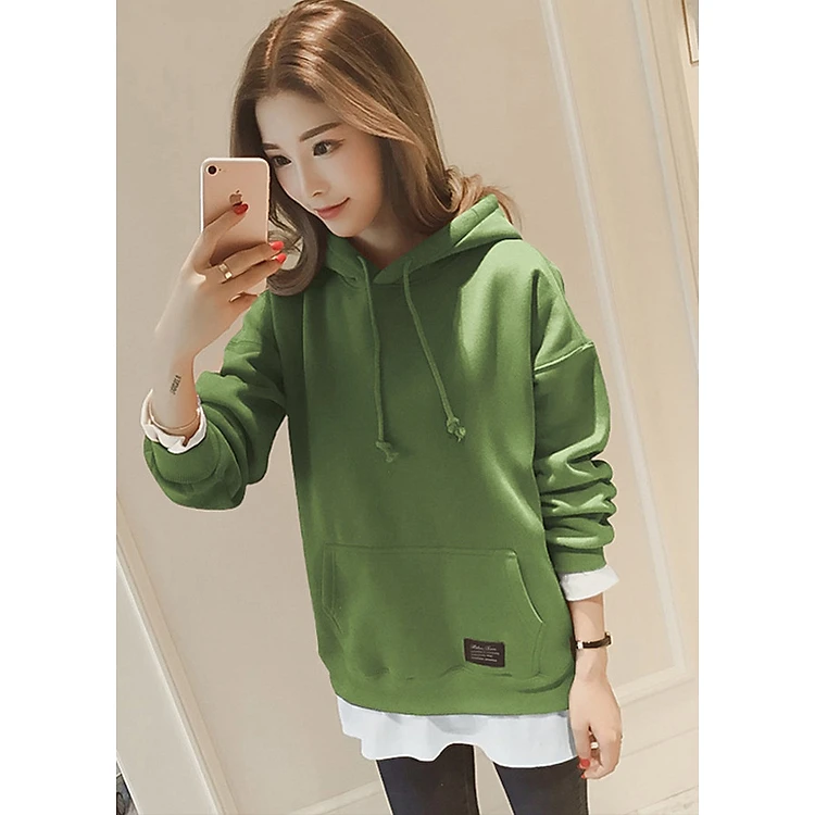 Áo Khoác Hoodie Giả 2 Lớp Form Rộng Tay Dài Mũ Trùm Đầu Phiên Bản Hàn Quốc Mới 2019