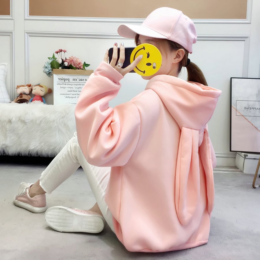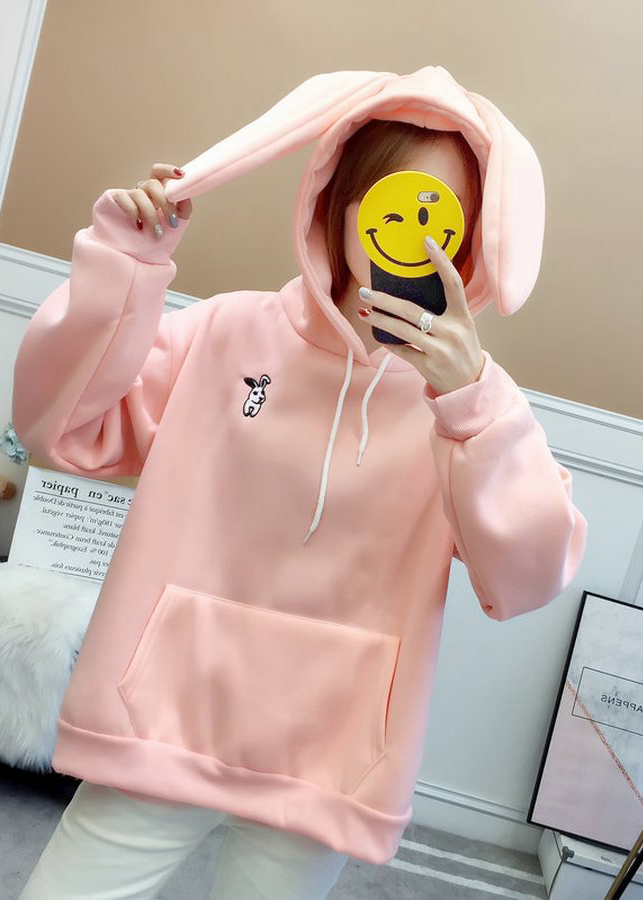 - Áo khoác Hoodie nỉ nữ tai thỏ có mũ kèm dây rút cá tính, form rộng rãi thoải mái, túi thông trước ngực, bo tay, bo gấu gọn gàng.