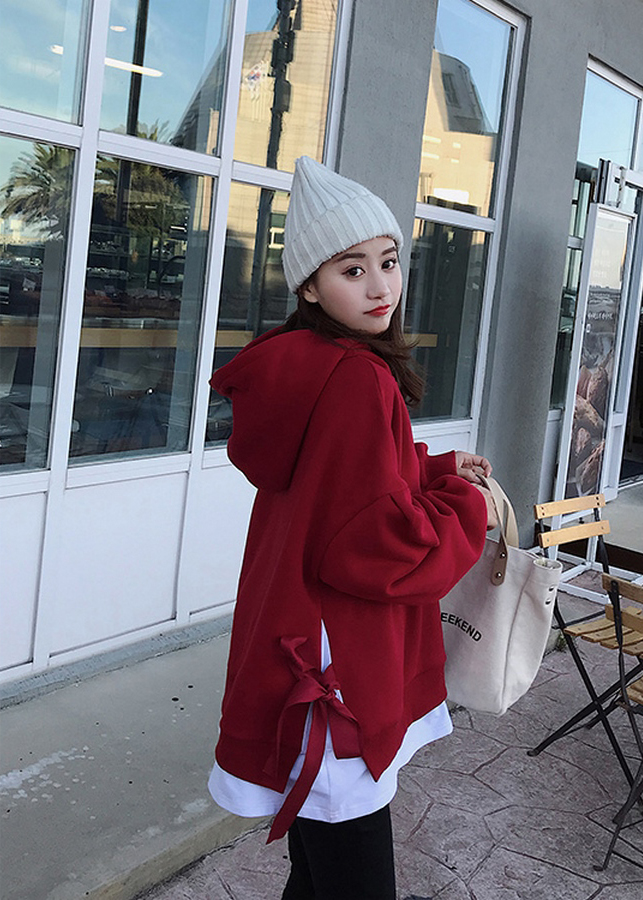 Thông tin chi tiết sản phẩm Áo khoác Hoodie form rộng tay dài buộc nơ dây sườn