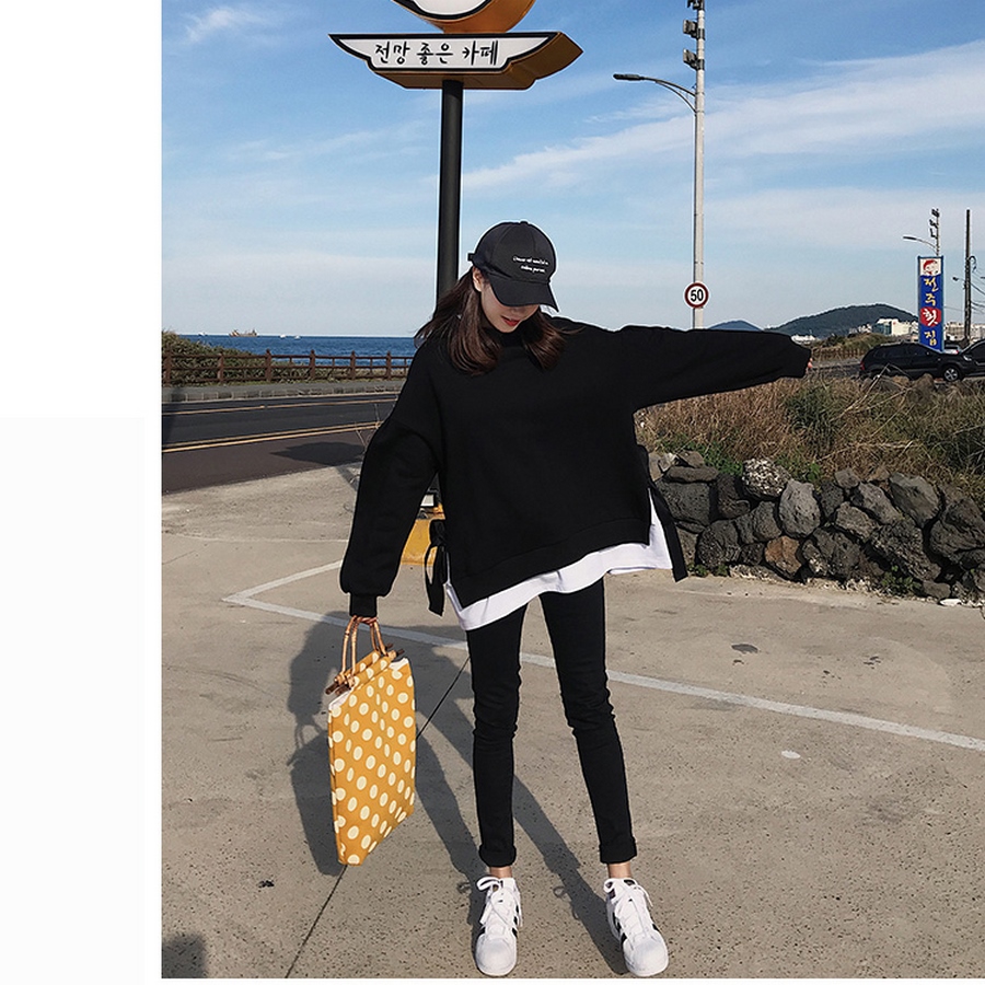 Áo Khoác Hoodie Nỉ Nữ Tay Dài Form Rộng Buộc Nơ Dây Sườn Mới 2019