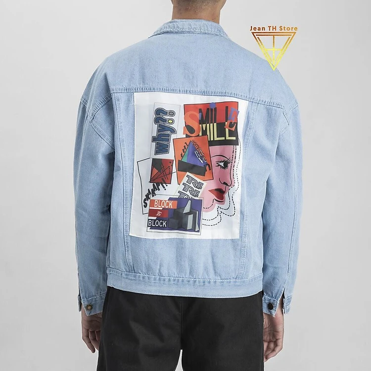 Áo khoác jean nam đắp hình Why màu xanh cơ bản năng động