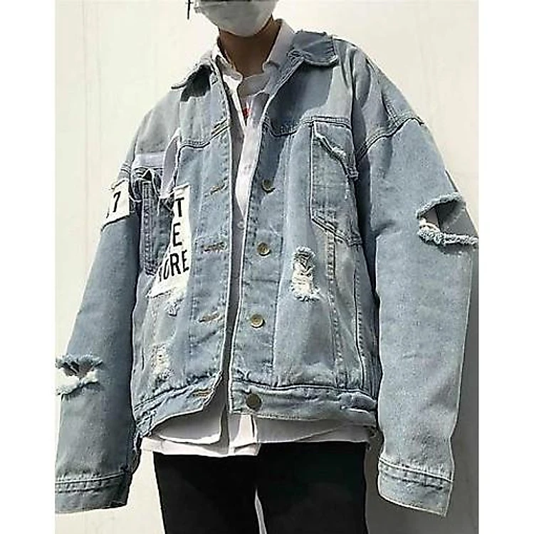 Áo khoác jean nam phối chữ Just One More thiết kế thời trang năng động cá tính