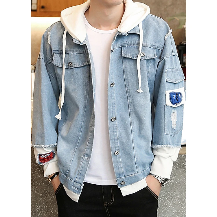 Áo khoác jean nam phối thun có nón phong cách sành điệu