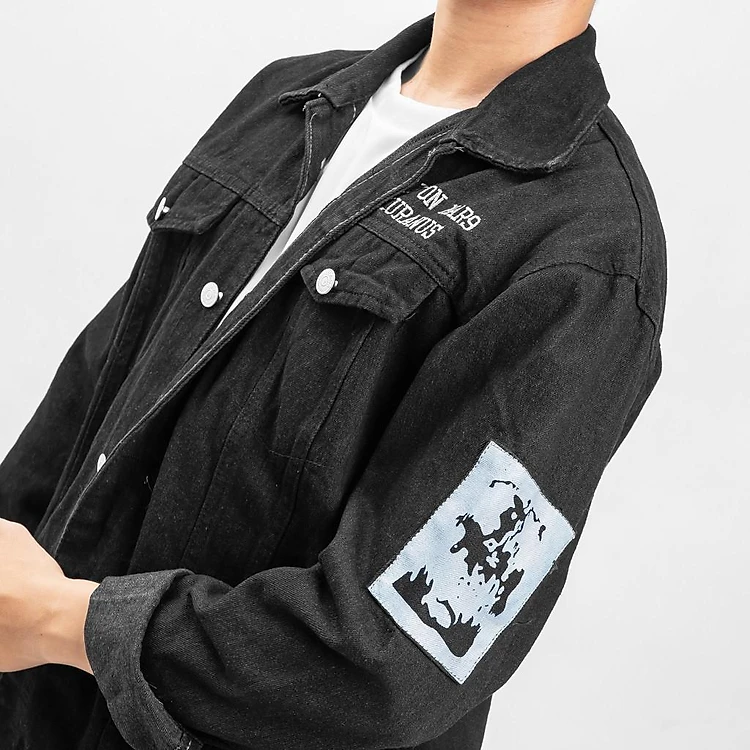 Áo khoác jean nam thiết kế đắp tay màu đen thời trang phong cách cá tính