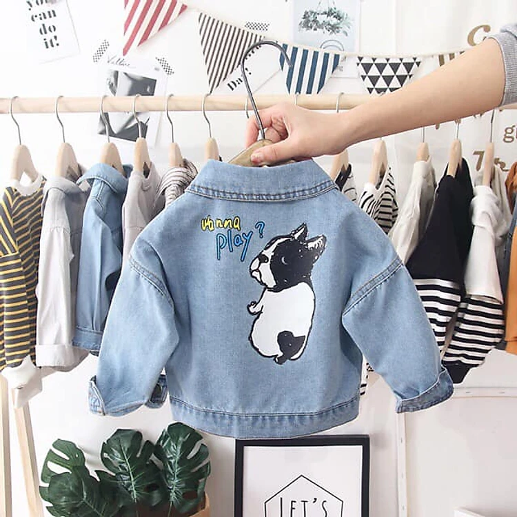 Áo Khoác Jeans Bé In Hình Chó Đốm