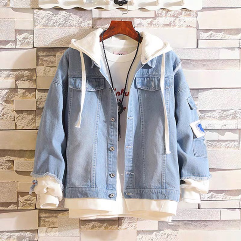 Áo khoác jeans nam in hình cún dễ thương mặt cười , áo khoác nam form vừa phối nỉ mềm co dãn lôi cuốn có mũ có 3 size Julido mẫu khoác AKJ8686 - Màu Xanh