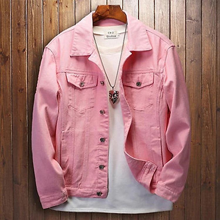 Áo khoác Kaki Nam trơn màu Hồng có túi nút cao cấp