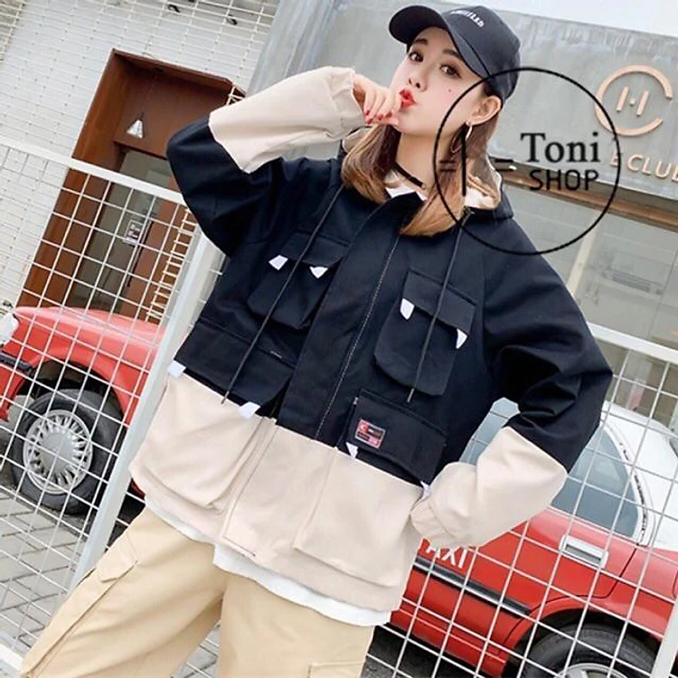 Áo khoác kaki túi hộp nam nữ có hai mắt trên túi