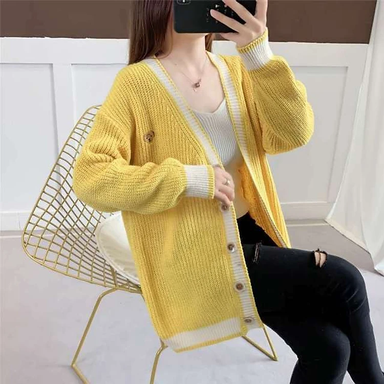 Áo Khoác Len Cardigan Cổ Chữ V Màu Trơn