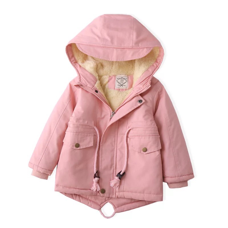 Áo khoác lót lông bé gái 3-10 tuổi với chất liệu vải thô cao cấp mềm mại không bai xù,bên trong lót lông mềm mượt