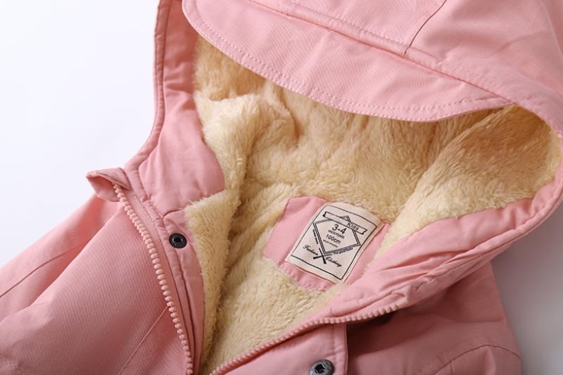 Áo khoác lót lông bé gái 3-10 tuổi có mũ và khóa kéo