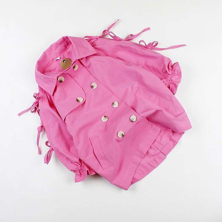 Áo khoác măng tô từ 25 đến 35 kg cài nút thắt nơ siêu cưng cho bé gái 5-10 tuổi 01488-01486