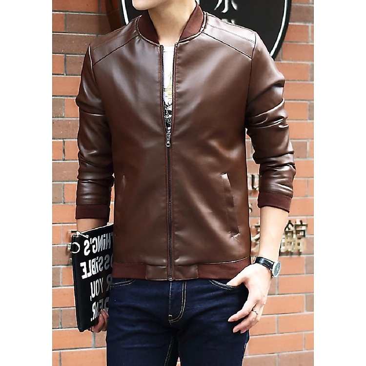 Áo Khoác Nam Da Cổ Thun Phong Cách Năng Động Cá Tính