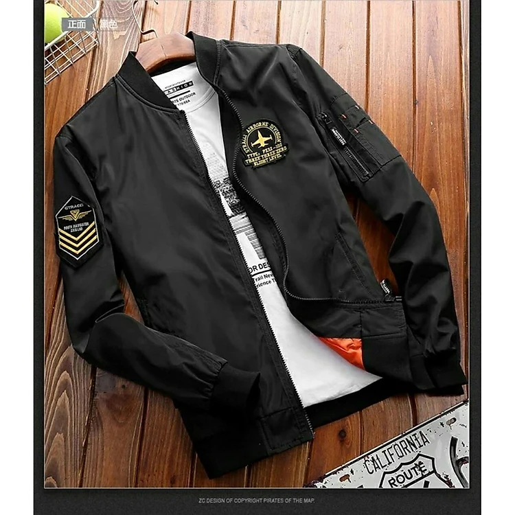Ao khoác nam kaki thêu logo ngực và tay, túi khóa phối tay hàng đẹp bao chất + M093