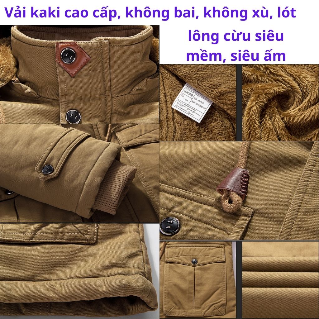 - Vải kaki cao cấp không bai, không xù, không dão + lót lông cừu siêu mềm, siêu ấm