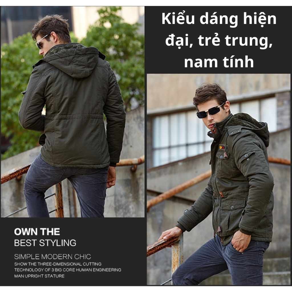 - Áo khoác lính có may kèm mũ ấm áp cho mùa đông