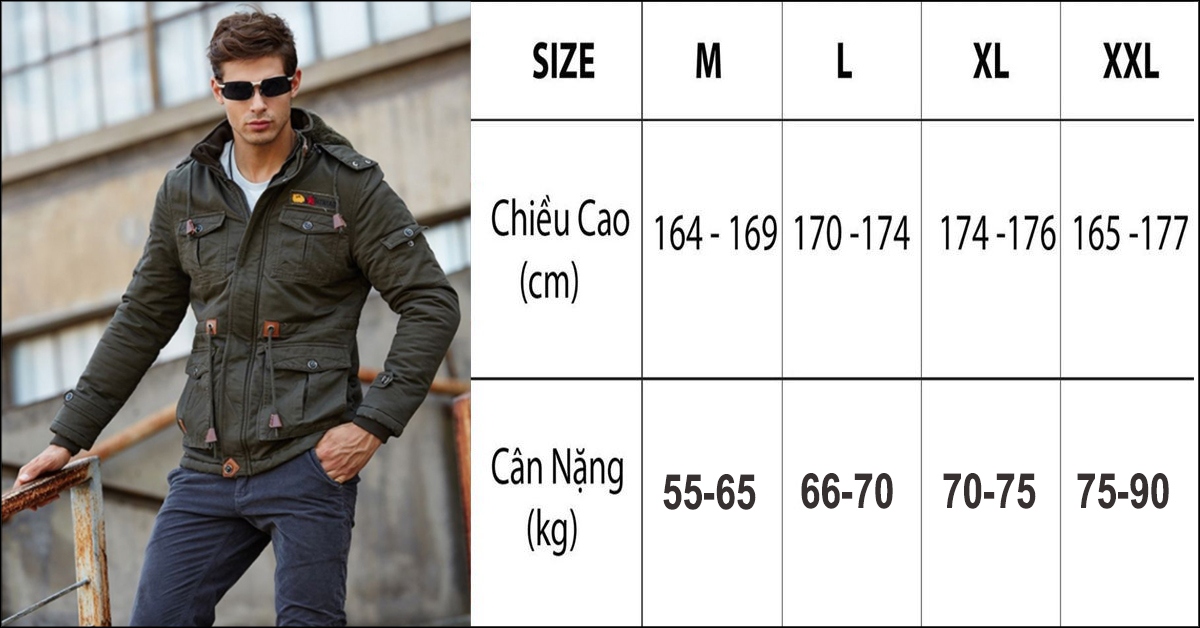 ***BẢNG CHỌN SIZE ÁO KHOÁC: