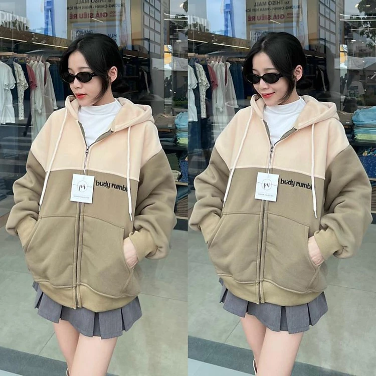 Áo khoác nỉ nỉ dệt thêu BUD cute phong cách-A2114