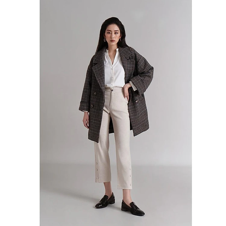 Áo khoác nữ bigsize dáng ngắn hoạ tiết kẻ Hounstooth 2NDDATE CO002HF