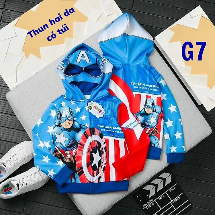 Áo khoác siêu nhân bé trai có mũ trùm từ 11-41kg. Chất thun hai da dày dặn- Hình in 3D có túi
