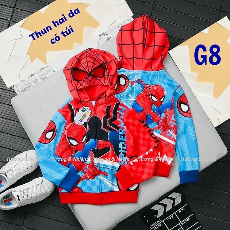 Áo khoác siêu nhân bé trai có nón mặt nạ hình nhân vật từ 12-42kg- Thun hai da dày dặn có túi