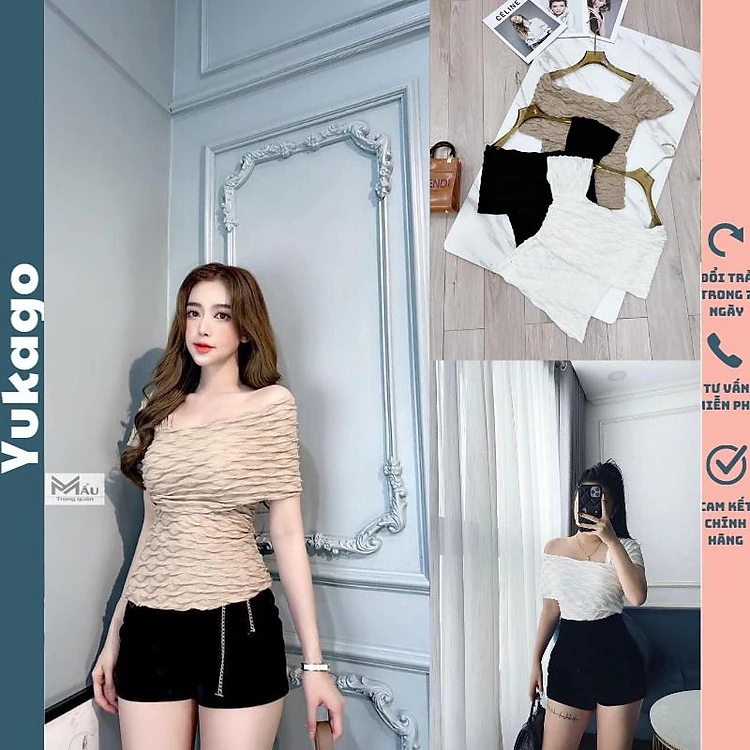Áo kiểu nữ bánh bèo phong cách Hàn Quốc đẹp sexy nhăn tiểu thư Yukago