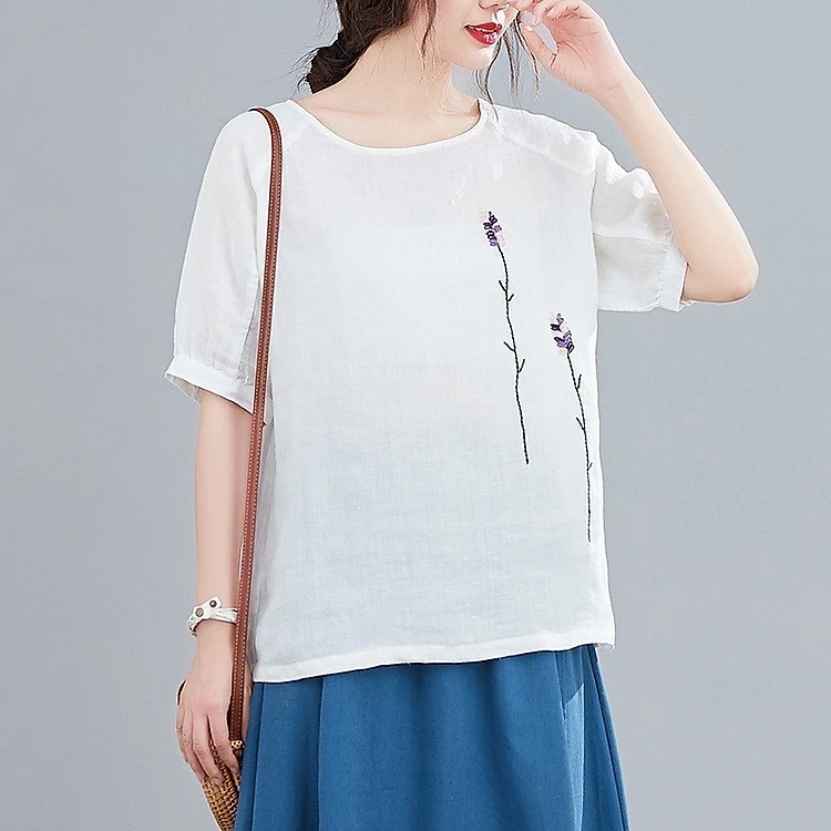 Áo kiểu nữ cổ tròn ngắn tay form rộng, chất đũi mềm mát, dễ chịu khi mặc Haint Boutique Ale40