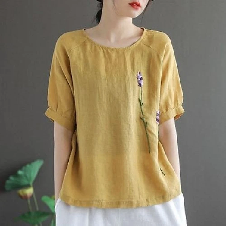 Áo kiểu nữ cổ tròn ngắn tay form rộng, chất đũi mềm mát, dễ chịu khi mặc Haint Boutique Ale40