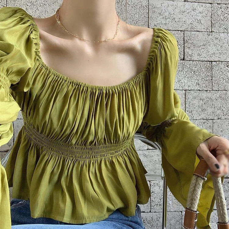Áo kiểu nữ cổ vuông chất lụa mát màu xanh lá