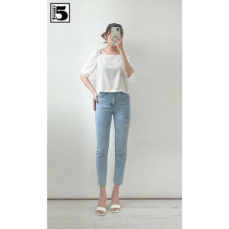 Áo kiểu nữ cổ vuông, nhún tay Twentyfive N1023