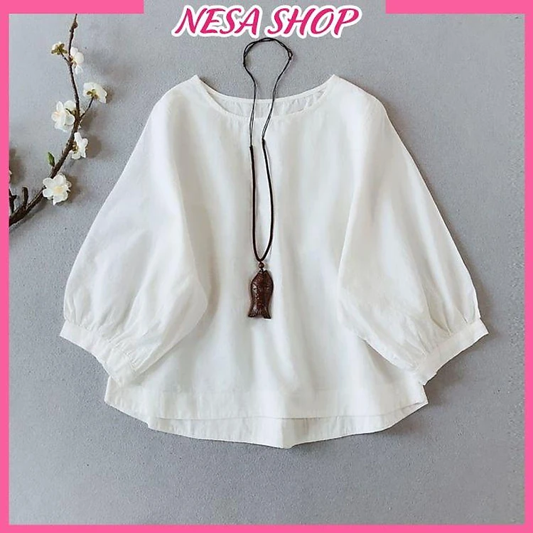 Áo kiểu nữ đẹp, chất liệu Đũi, vải mềm mát, thấm mồ hôi, áo kiểu form rộng, áo kiểu nữ Hàn Quốc NeSa Shop. AKH.46