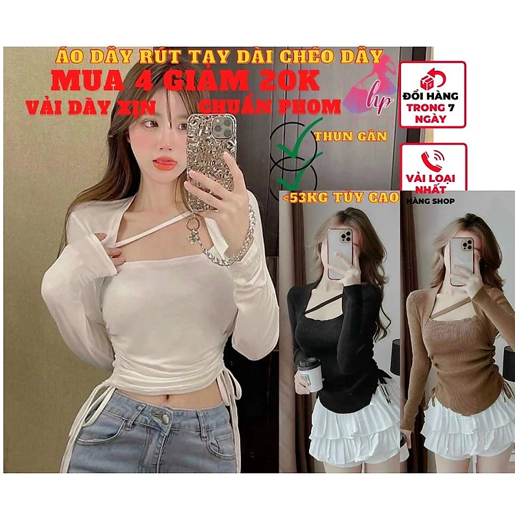 Áo kiểu nữ đẹp cổ vuông ôm body tay dài rút eo 1 dây phong cách hàn quốc cực dễ thương mẫu mới thời trang-A103