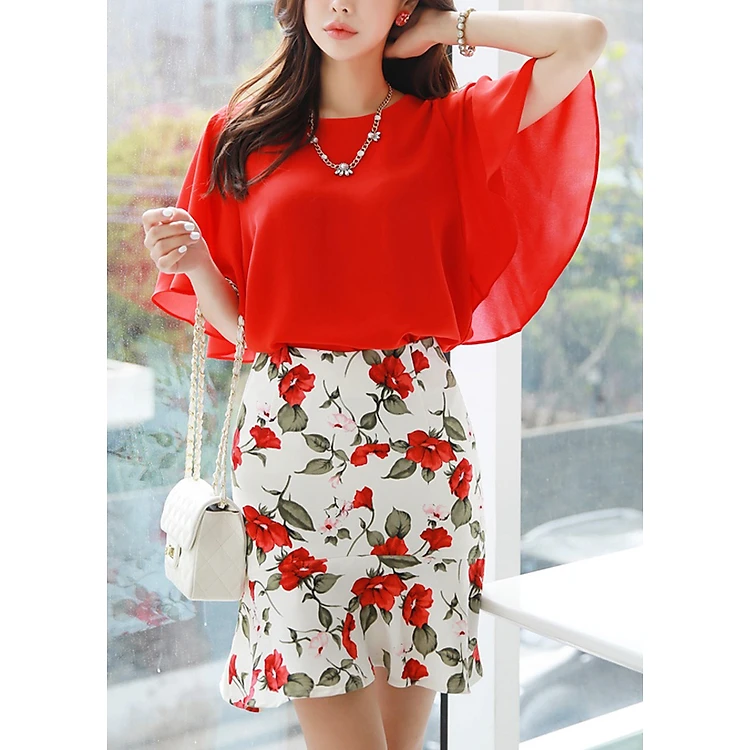 Áo Kiểu Nữ Đỏ Tay Bèo Đổ Quyến Rũ AA 155 - Đỏ
