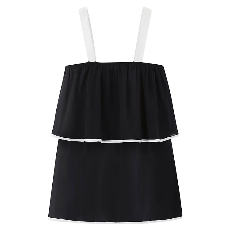 - Áo Kiểu Nữ Hai Dây Màu Đen Phối Trắng The Cosmo Contrast Ruffle Top được may từ chất liệu vải an toàn cho sức khỏe, chất vải mềm mại tạo cảm giác thoải mái khi mặc. Hướng đến phong cách nữ tính, hiện đại, là sự lựa chọn hoàn hảo cho phái đẹp.